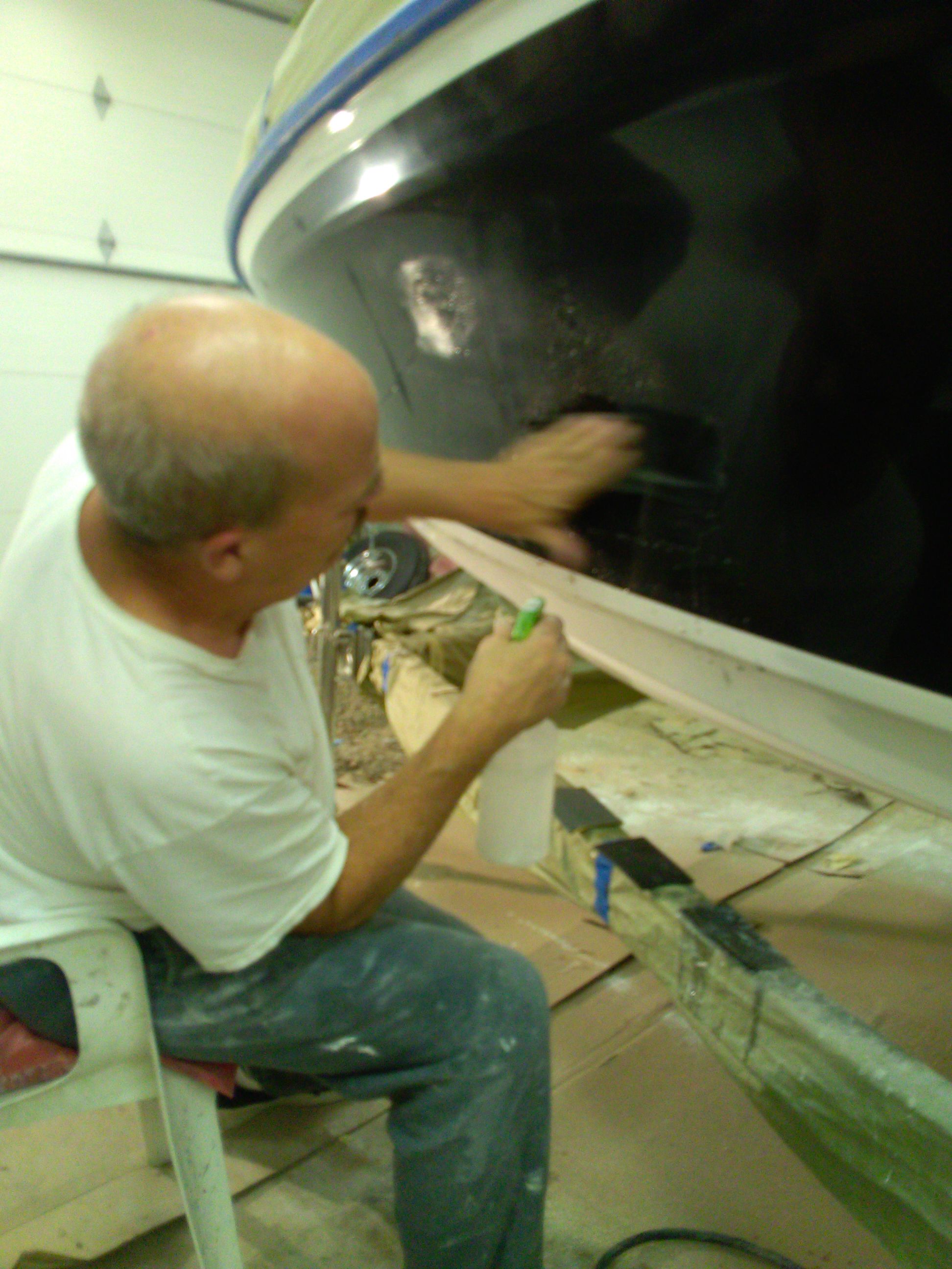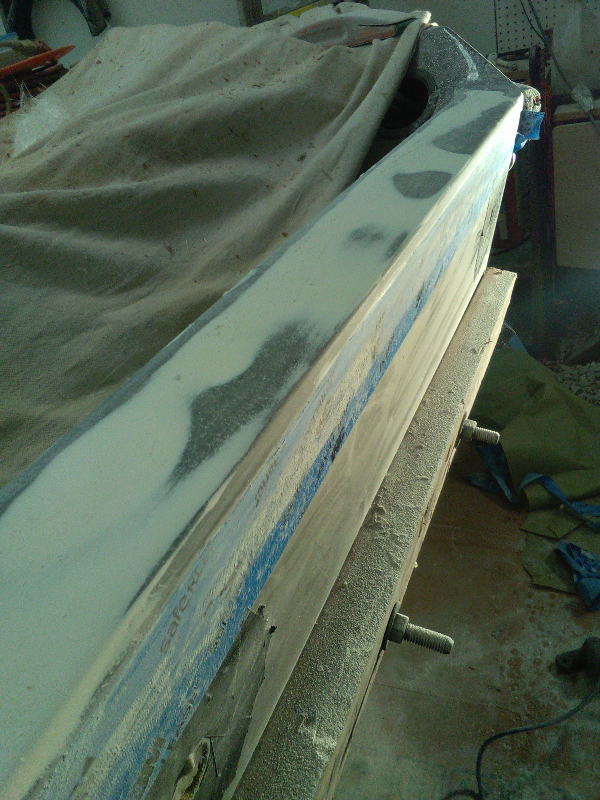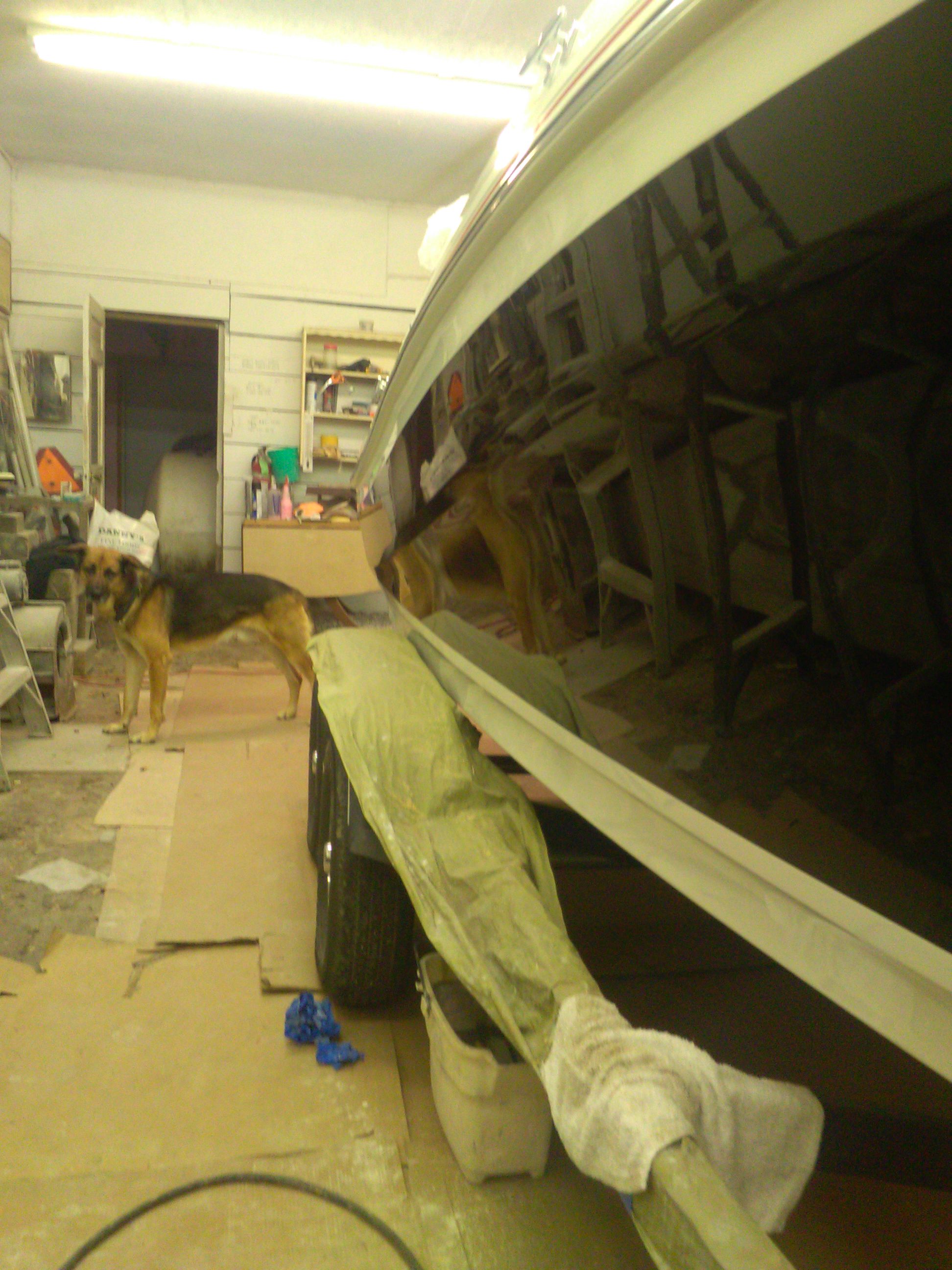 I buff the sides an found some small white chips in the black hull??? I am wet sanding them off , an than buff an polish